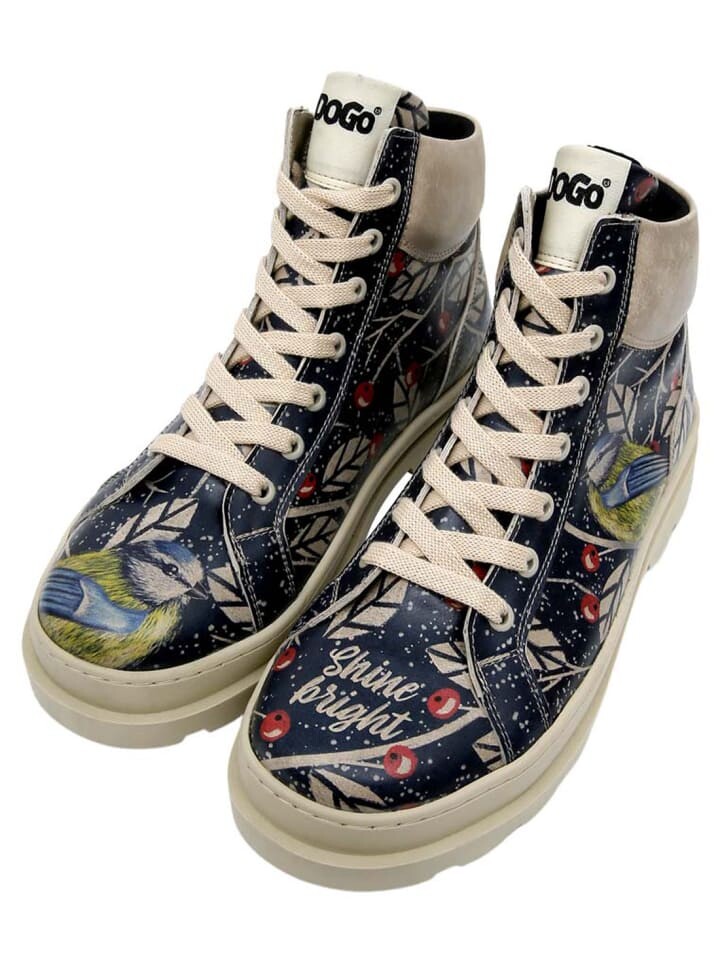 DOGO Adriana Boots – идеальные ботильоны для серых осенних и зимних дней. Эти ботильоны поднимут хорошее настроение благодаря красочному дизайну и всегда в тренде благодаря удобной подошве на платформе. С этими стильными женскими ботинками вы станете законодательницей моды, ведь яркие ботинки на платформе в настоящее время являются модным must-have. Классные ботинки DOGO Adriana — это не только абсолютная изюминка моды, но и чрезвычайно удобные в носке. Платформа с мягкой подкладкой позволяет вам парить на высоте пяти сантиметров над землей, а голенище с дополнительной мягкой подкладкой высотой девять сантиметров обеспечивает поддержку лодыжек и согревает в холодные дни сезона. Шнуровка с девятью отверстиями позволяет индивидуально подогнать ботинок под вашу обувь. Благодаря широкому крою эти ботинки можно носить и с ортопедическими стельками. Подошва оснащена так, чтобы вы могли стильно и комфортно ходить этой осенью и зимой.