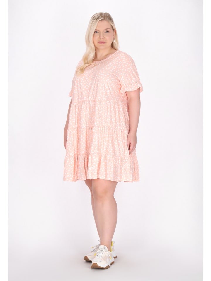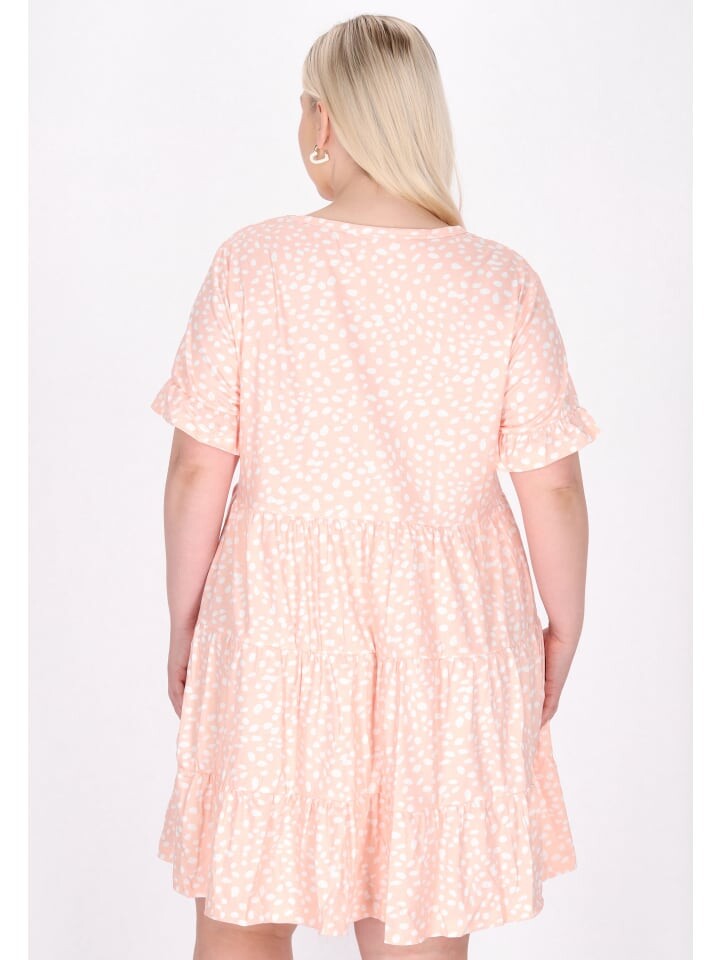 Окунитесь в летнюю атмосферу с помощью этого стильного свободного мини-платья стандартной посадки, обеспечивающего максимальный комфорт. Модель с круглым вырезом и короткими рукавами с рюшами украшена игривыми оборками, которые подчеркивают ее женственный шарм. Многоярусный силуэт имеет присборенные швы, а абстрактный узор подчеркнет ваш модный образ — идеально подходит для повседневных девушек больших размеров, которые ищут модный стиль! Этот продукт является частью коллекции Plus Size.