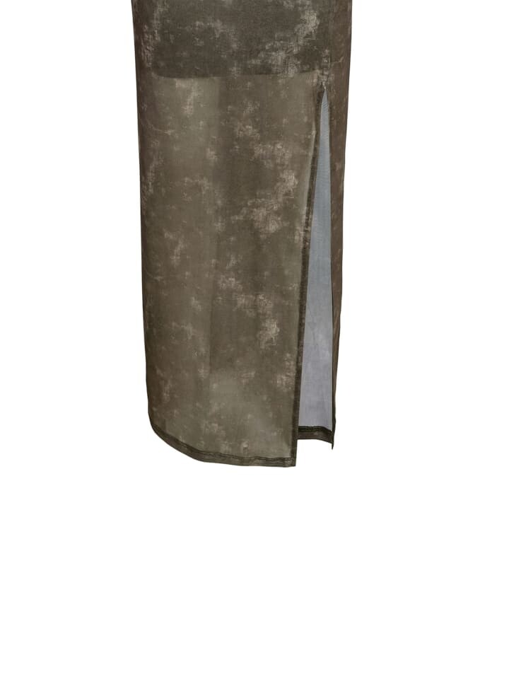 Сделано из переработанного материала / Это длинное платье имеет круглый вырез и высокий разрез, что придает элегантный вид.
