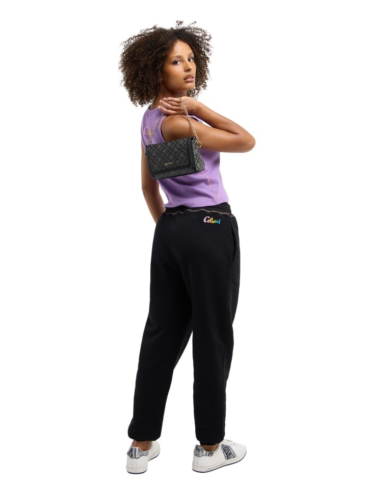 Эта сумка через плечо впечатляет цепочкой, принтом логотипа и золотой надписью логотипа. Сумке можно придать другой вид с помощью прилагаемого плечевого ремня.