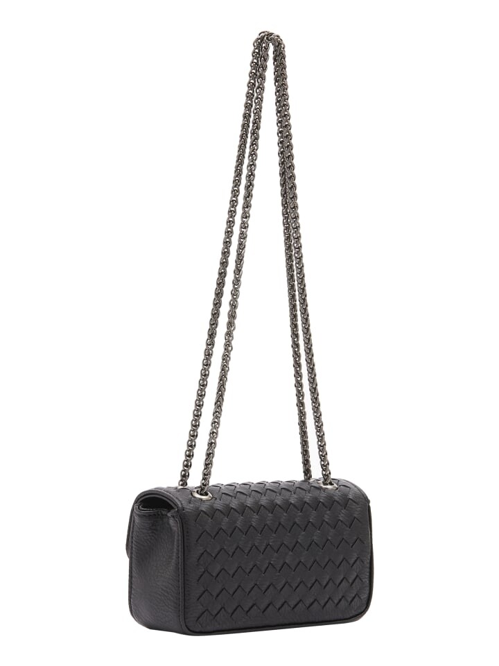 Поднимите свой стиль с помощью этой структурированной сумки через плечо с тканой текстурой и клапаном, застегивающимся прямоугольным поворотным замком. Ремешок-цепочка из переплетенных металлических петель придает нотку элегантности. Эта небольшая прямоугольная сумка с двумя отделениями и плетеным узором одновременно стильна и функциональна для любого случая.