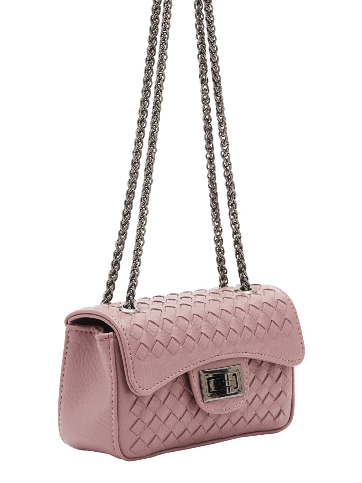 Поднимите свой стиль с помощью этой структурированной сумки через плечо с тканой текстурой и клапаном, застегивающимся прямоугольным поворотным замком. Ремешок-цепочка из переплетенных металлических петель придает нотку элегантности. Эта небольшая прямоугольная сумка с двумя отделениями и плетеным узором одновременно стильна и функциональна для любого случая.