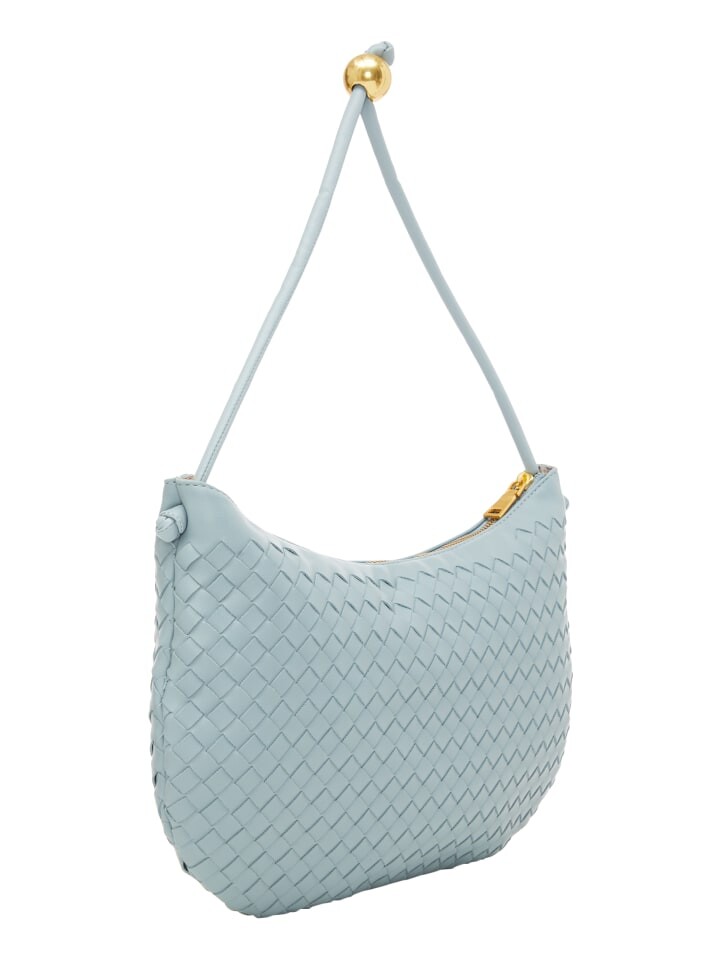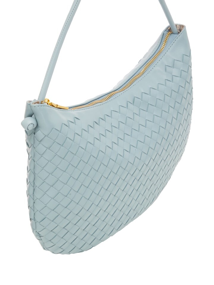 Представляем сумочку среднего размера полукруглой формы с плоским дном для устойчивости. Верхняя ручка украшена бусинами, придающими изделию нотку изысканности. Имеет удобную застежку-молнию и внутренний карман для хранения вещей. Эта стильная сумка из эко-кожи с плетеным узором излучает элегантность и очарование.