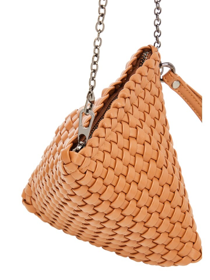 Представляем новинку в коллекции — уникальную сумочку треугольной формы с замысловатыми ткаными деталями. Фактура этой сумки создана искусно переплетающимися полосками, образующими потрясающий узор. Модель оснащена изящным ремешком-цепочкой для универсального ношения на плече или через плечо. Петля сбоку придает всей этой вещи дополнительный стиль. Эта сумка идеально подходит для тех, кто ищет эффектную вещь, излучающую изысканность и искусство.