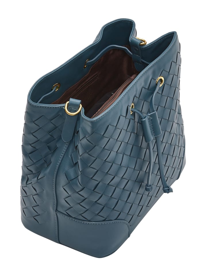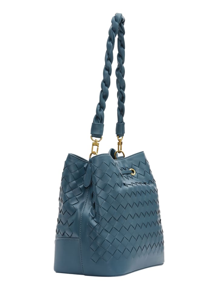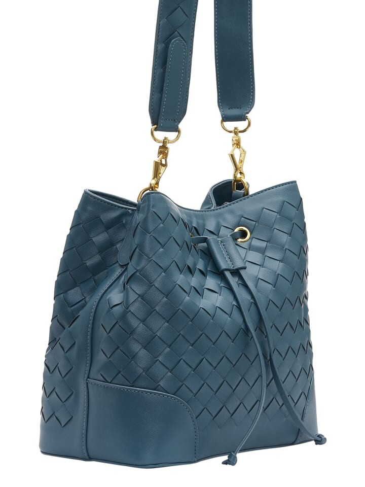 Представляем сумку среднего размера в форме ведра с регулируемым плетеным ремнем через плечо для универсального ношения. Эта элегантная вещь имеет застежку на шнурке и два отделения, включая внутренний карман на молнии для организации вещей. Эта стильная сумка, выполненная из эко-кожи с текстурированным тканым узором, излучает изысканность и очарование.