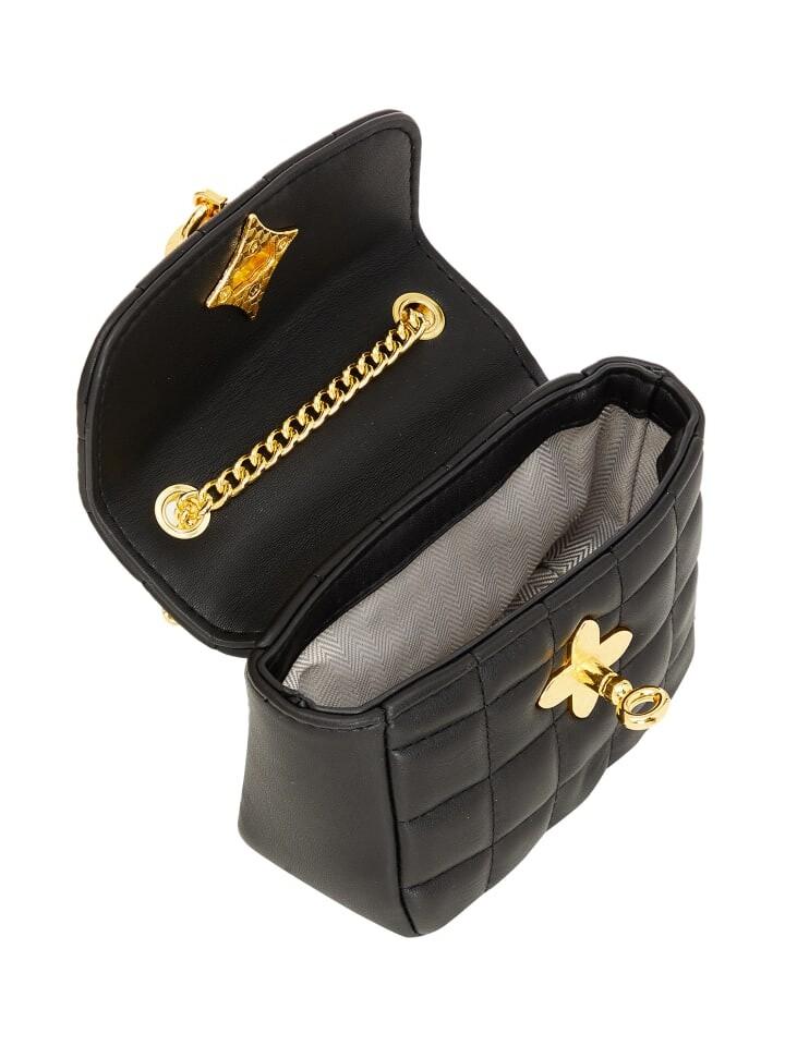 Мы с гордостью представляем наше последнее дополнение к коллекции — структурированную прямоугольную сумку через плечо, которая излучает элегантность и функциональность. Стеганая текстура с открытой строчкой образует сетчатый узор, а блестящий металлический логотип в виде звезды и застежка придают нотку роскоши. Ремешок-цепочка, украшенный металлической отделкой, позволяет носить сумку как через плечо, так и через тело.