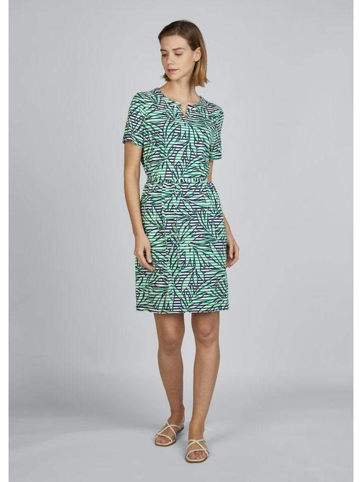 Это платье с рукавом 1/2 привлекает всеобщее внимание. Модель выполнена в летнем цветочном принте, который контрастирует с классическим дизайном в полоску. Тонкий V-образный вырез украшает зону декольте. По талии платье можно завязать поясом. Сочетайте платье с босоножками.