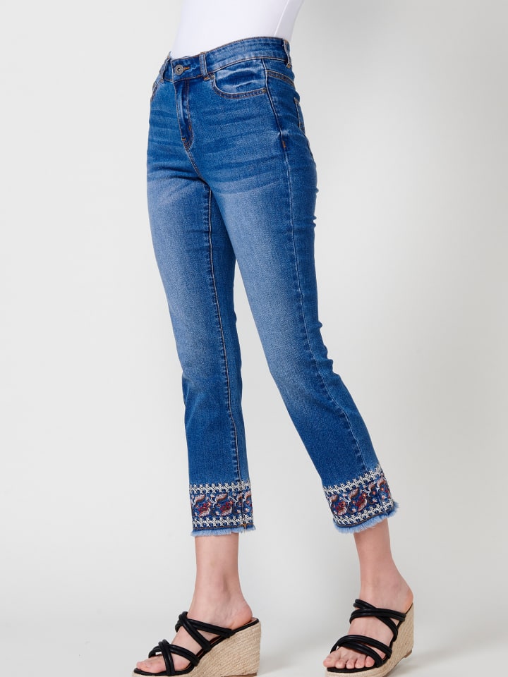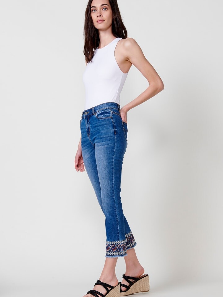Длинные узкие джинсы. Закончено цветочной вышивкой. Состав: 70% хлопок, 28% полиэстер, 2% эластан.