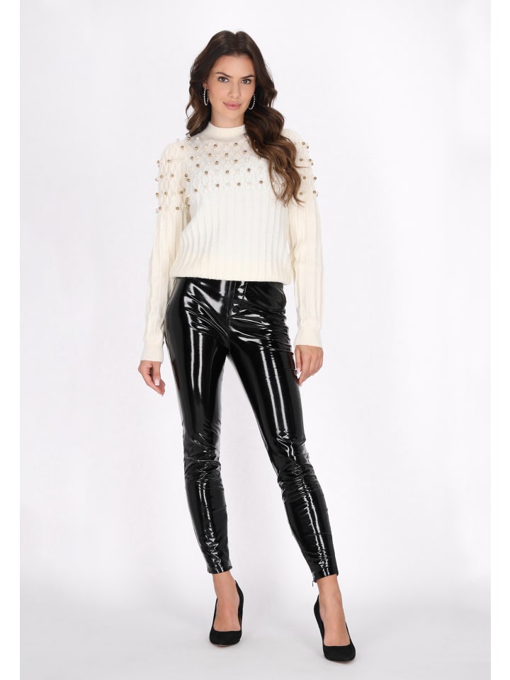 Подчеркните свой стиль с помощью этого пушистого свитера с длинными рукавами, украшенного замысловатыми украшениями на груди и руках. Круглый вырез добавляет элегантности, а приталенный силуэт создает шикарный вид. Эта модель идеально подходит для тепла и модного стиля. Ребристые манжеты, воротник и нижний край обеспечивают плотную и удобную посадку.
