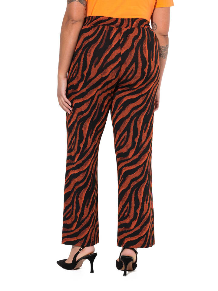Брюки, слегка расклешенные, с цветным рисунком «зебра» и эластичным поясом.