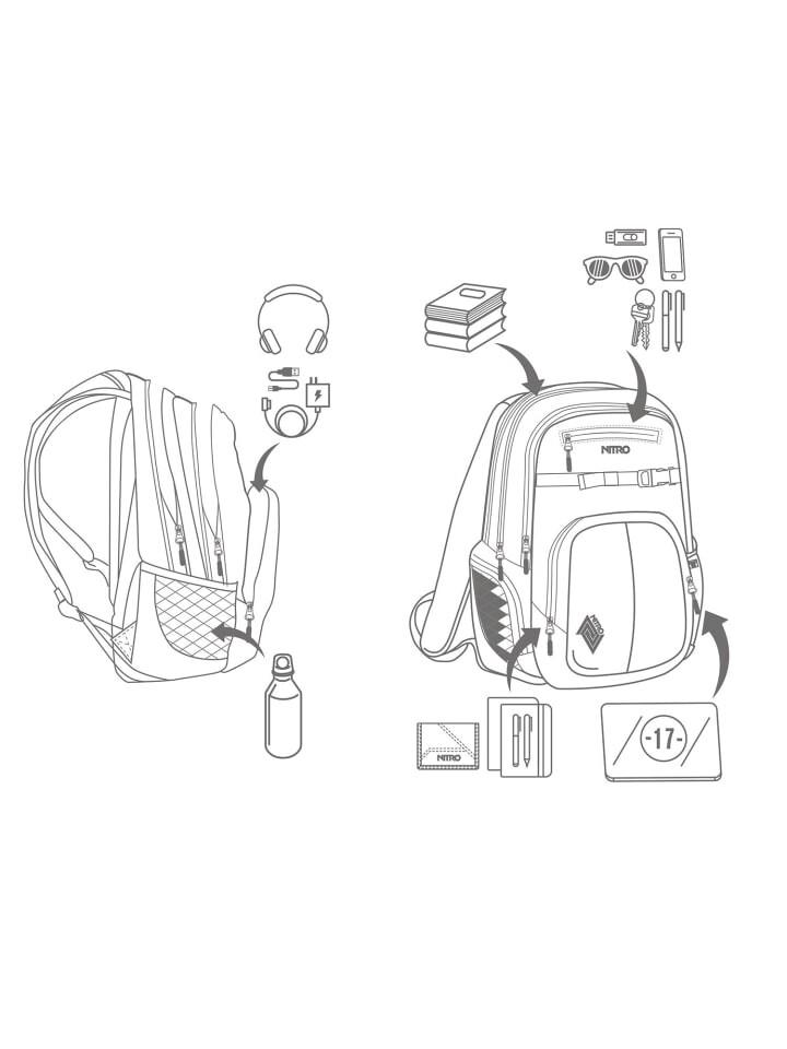 Сделайте комплект Nitro Chase Pack своим ежедневным спутником — в школе, на работе, в университете или на отдыхе. Благодаря объему 35 литров, двум большим основным отделениям или внутреннему отделению для хранения кабелей, зарядных устройств и других предметов у вас не возникнет проблем с пространством. Регулируемый нагрудный ремень и удобная подкладка на спине гарантируют, что рюкзак всегда оптимально сидит на ваших плечах. Пакет Chase доступен во многих интересных цветах, благодаря которым вы будете отлично выглядеть в любое время дня и ночи. Размер: 37см х 51см х 23см
