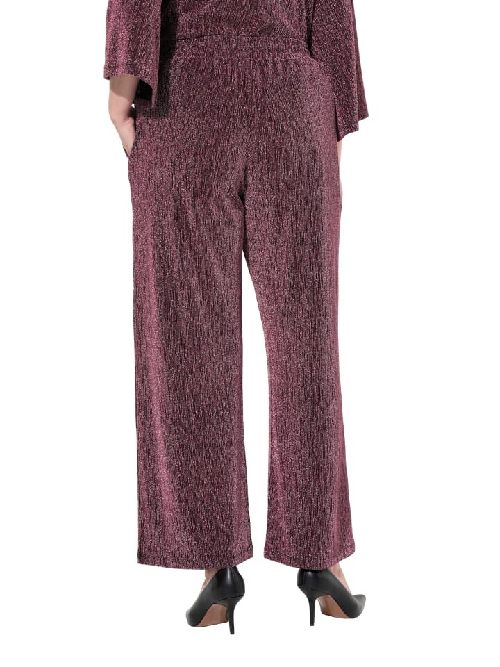Брюки широкие, с элегантным эффектом блесток. Эластичный пояс с боковыми карманами.