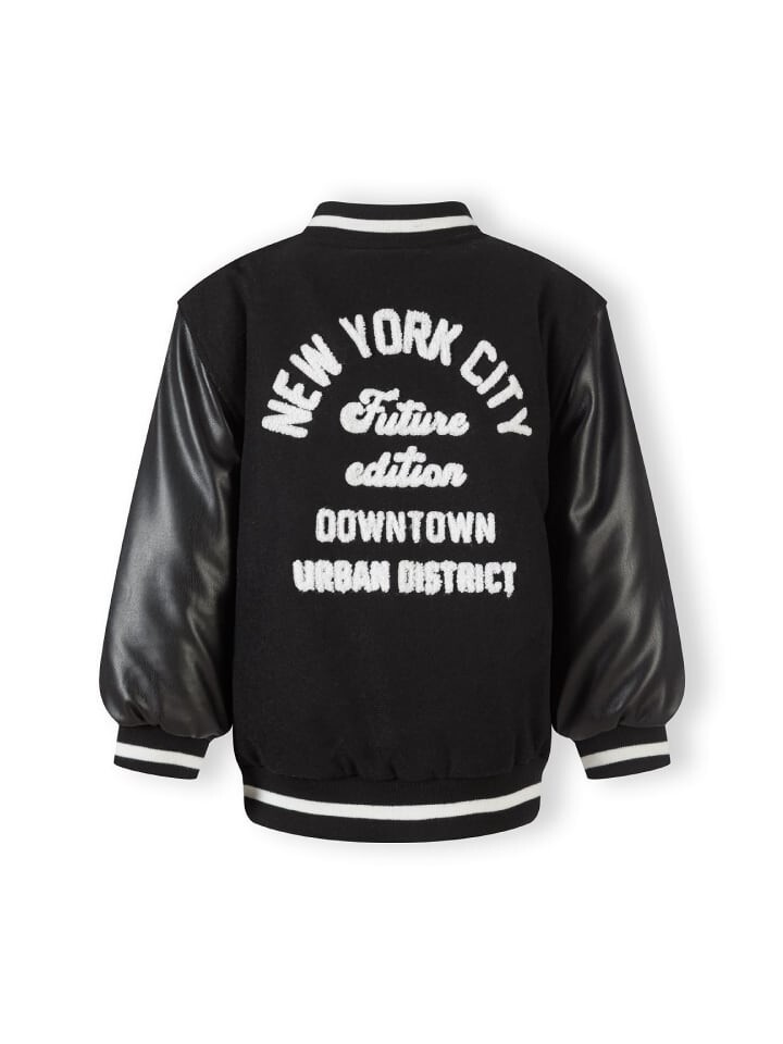 Бейсбольная куртка изготовлена из искусственной кожи и материала с контрастными надписями. Мягкий ребристый воротник, манжеты с полосками на рукавах и по низу придают куртке спортивный характер. Практичные карманы идеально подходят для того, чтобы спрятать все мелкие предметы, важные для детей, а кнопки позволяют легко надевать и снимать.