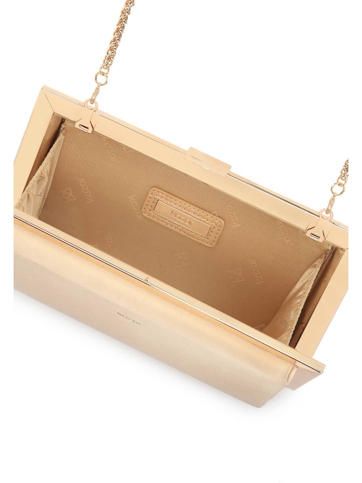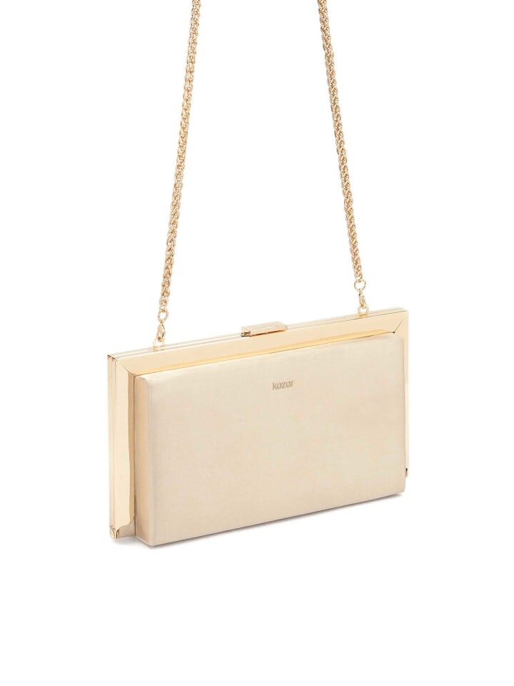 Элегантность и шик – вот слова, которые идеально описывают эту вечернюю сумочку. Изготовленное из нежной бежевой ткани, это настоящий шедевр. Их очарование заключается в простоте, которая сочетается с изысканным классом. Вечерняя сумка прекрасно лежит в руке, а благодаря съемной цепочке ее можно повесить на плечо. Металлический каркас с золотистой застежкой-кнопкой придает ему уникальный характер и делает его похожим на настоящее произведение искусства. Эти привлекательные детали выделяют эту сумочку среди остальных.