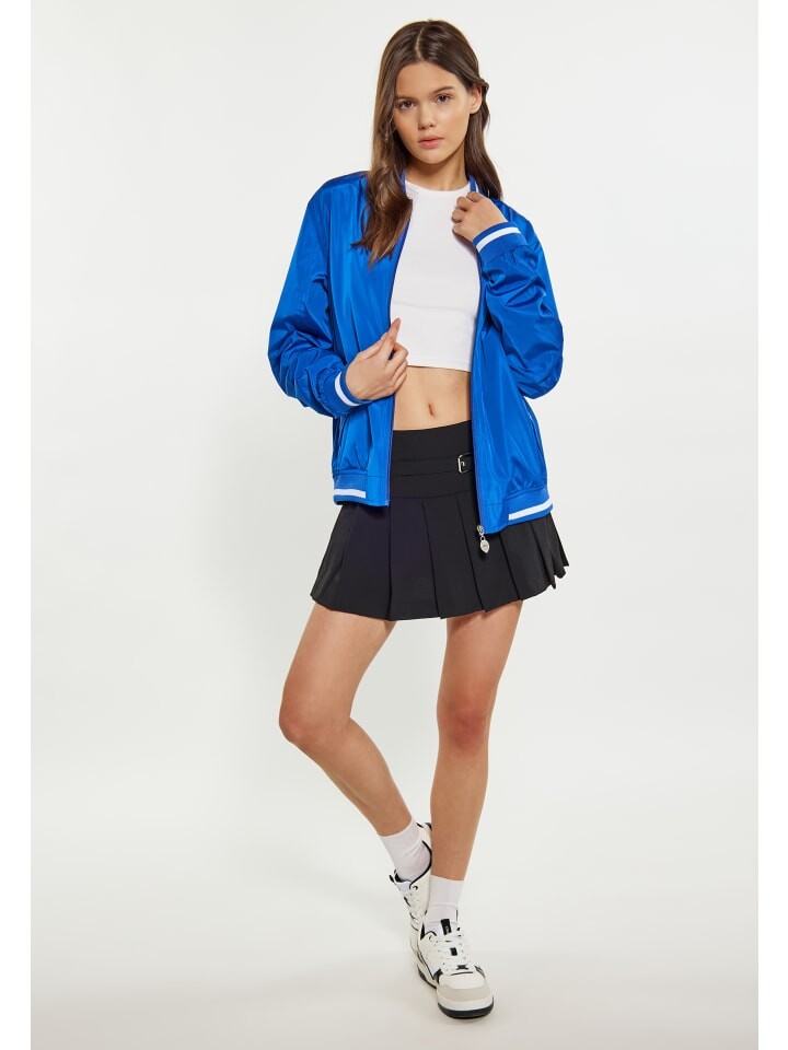 Откройте для себя куртку College — изящную куртку-бомбер с центральной молнией спереди и воротником-стойкой, создающим современный образ. Эта легкая модель имеет длинные рукава с эластичными манжетами, два передних кармана на пуговицах и эластичный низ. Изготовлен из гладкой ткани с легким блеском.