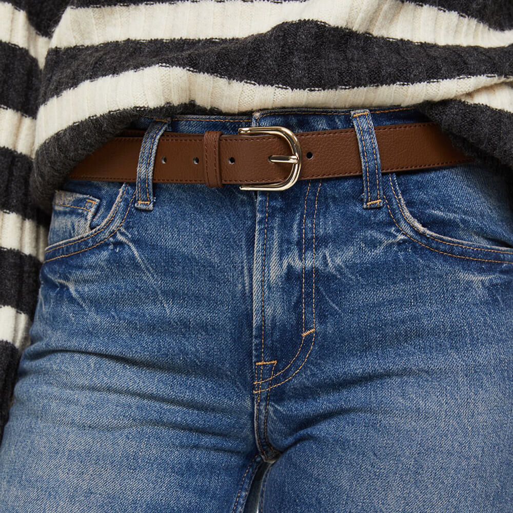Ремень из зерненой искусственной кожи с металлической пряжкой.