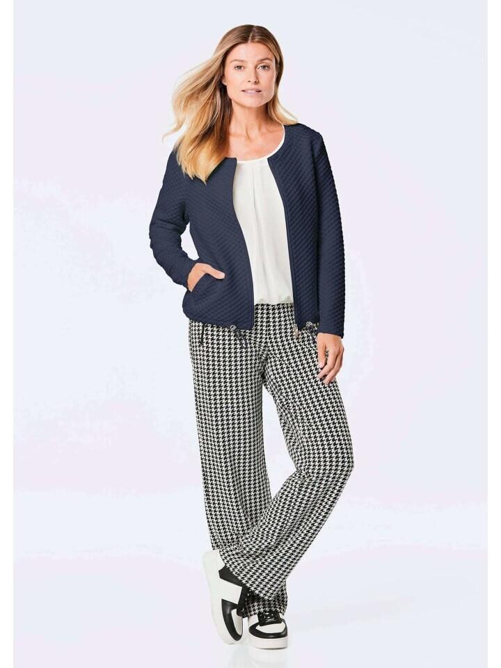 Куртка из структурированного трикотажа – удобная и стильная одновременно. Молния и кулиска по низу придают спортивный вид и позволяют регулировать ширину. С круглым вырезом, длинными рукавами и двумя боковыми карманами. Носите куртку как замену блейзеру или как спортивный, элегантный образ – она мгновенно преобразит ваш образ! Длина около 62 см по размеру. 46, размер около 59 см. 23.