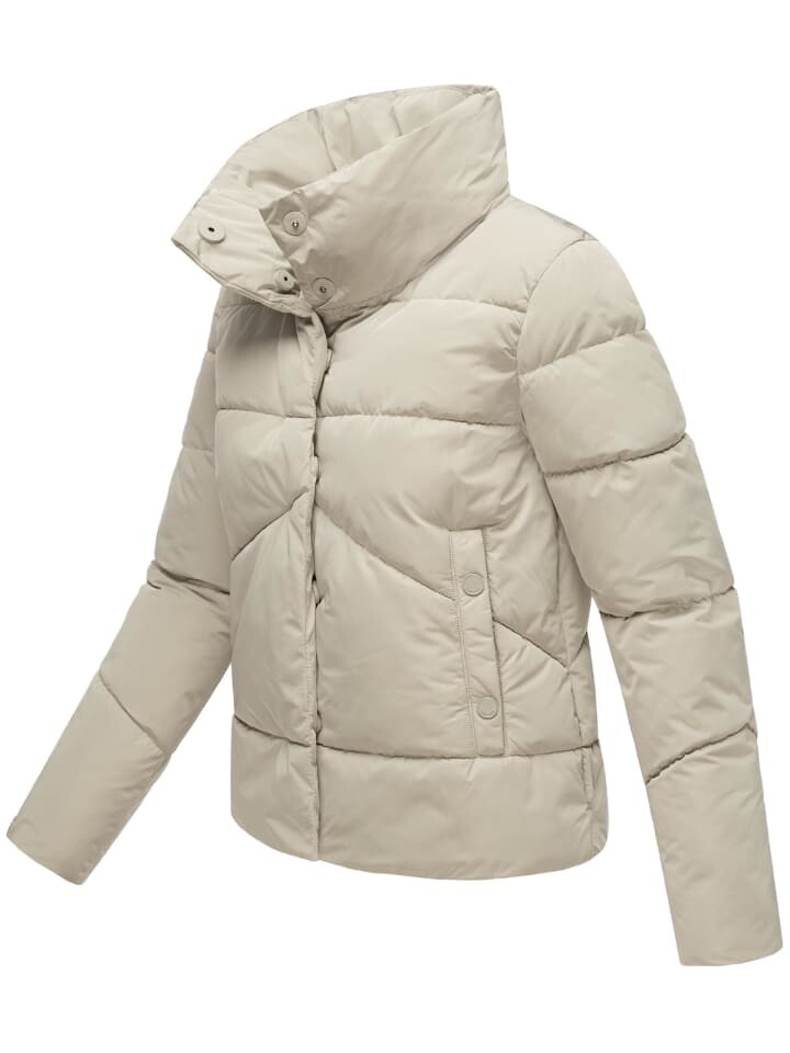 - Женская стеганая куртка на теплой подкладке с высоким воротником. - Ветроустойчивый, цепкий и переработанный внешний материал