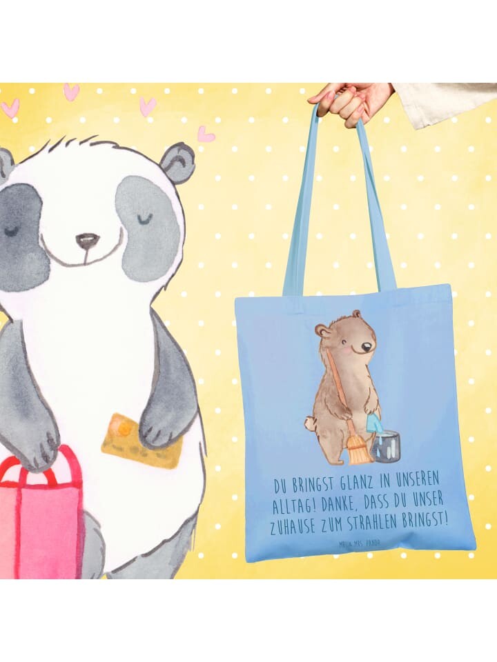Сумка Mr. & Mrs. Panda Tragetasche Glanz Putzfrau mit Spruch, небесно-синий