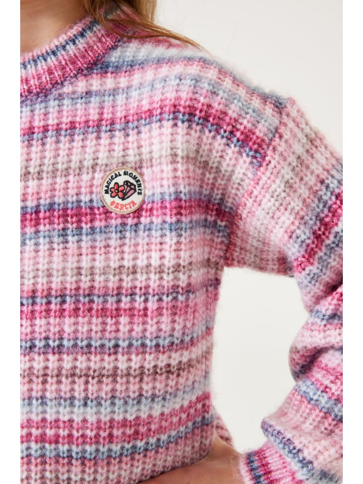 Вязаный свитер для девочек Garcia – удобный и стильный предмет одежды, идеально подходящий для повседневного ношения. Очаровательный полосатый узор в розовых и синих тонах и мягкая смесь материалов из акрила, полиэстера и полиамида обеспечивают комфорт и долговечность. Свободный крой и классический круглый вырез обеспечивают комфорт и легкость одевания, а легкий в уходе материал делает свитер подходящим для повседневного ношения. Этот свитер можно комбинировать по-разному, он будет теплым и модным для детского сада, отдыха или праздников.