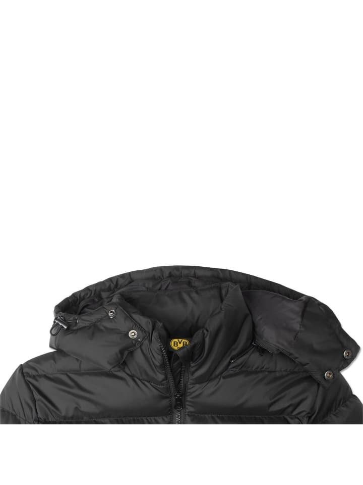 Женская стеганая куртка BVB – это теплая куртка классического кроя с практичной молнией и двумя боковыми карманами. Куртка Borussia Dortmund – идеальная повседневная куртка для всех поклонниц клуба. Капюшон также защищает ее от непогоды. Что бросается в глаза в черной куртке, так это логотип на рукаве с надписью Borussia Dortmund, а также силуэт SIGNAL IDUNA PARK на фоне, переходящем от красного к желтому. Это напоминает стадион перед закатом.