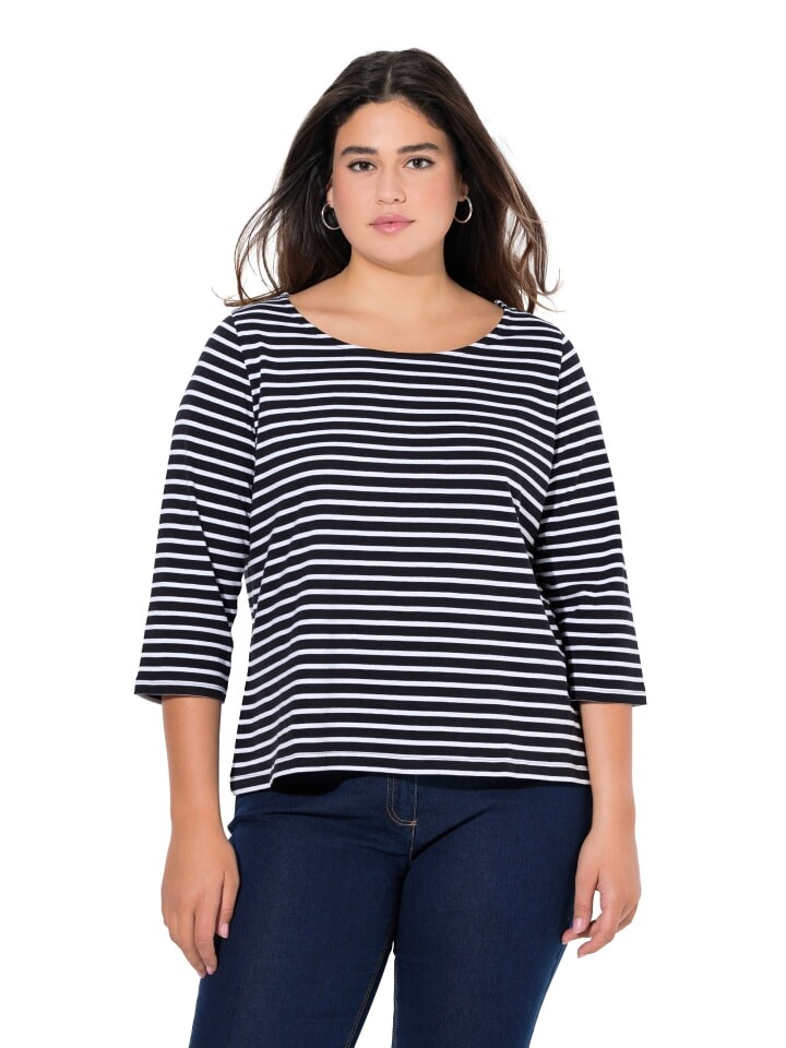 Полосатая рубашка классического кроя из мягкого трикотажа с круглым вырезом и рукавами 3/4.