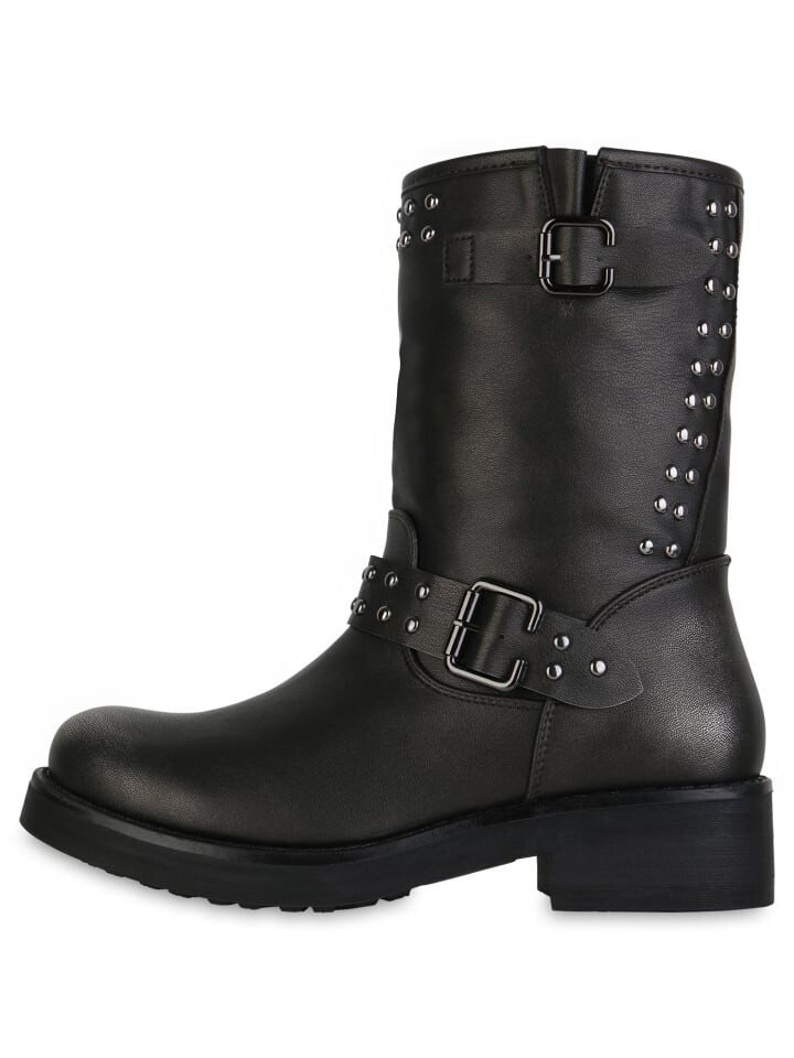С моделью обуви: байкерскими ботинками нет ничего лучшего. Обувь очень модная и прекрасно сочетается со многими нарядами. Женская обувь – популярный выбор по сезону: весна, осень, зима. Туфли имеют легкую подкладку. Стиль обуви: модный и привлекает внимание. Кроме того, практичный тип застежки: молния позволяет легко надевать и снимать. Еще одной изюминкой являются детали обуви: заклепки, пряжки. Благодаря материалу верха — синтетической коже, эти ботинки просты в уходе и долговечны. Внутренний материал: искусственная кожа и искусственный мех обеспечивают удобную посадку, стелька: искусственный мех обеспечивает комфорт при ходьбе, а подошва поддерживает каждый шаг. Благодаря форме каблука: блочный и высоте каблука: 4 см, а также носку: круглый, эти туфли прекрасно сочетаются с любым образом и случаем.