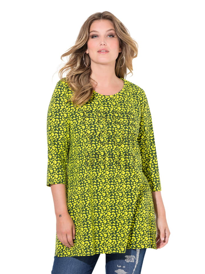 Длинная рубашка с эффектным леопардовым узором. Круглый вырез горловины, рукава 3/4.