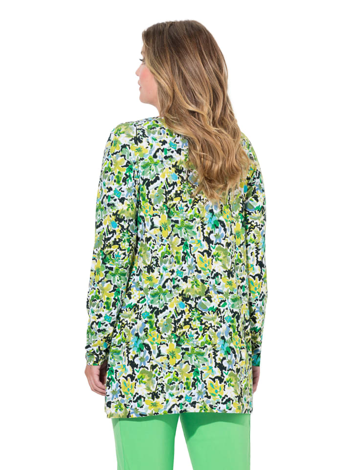 Рубашка с длинными рукавами и мелким цветочным узором, V-образный вырез.