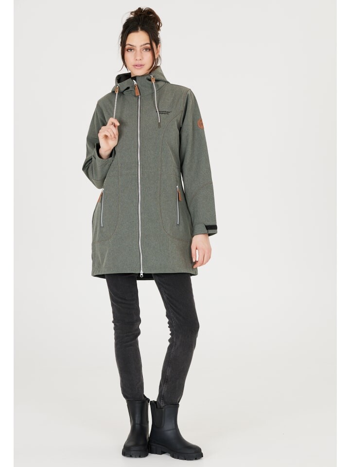 Представляем вашему вниманию длинную женскую куртку из софтшелла «Лилан» от компании Weather Report из Дании. Спортивный городской дизайн из Скандинавии подчеркнет ваш модный образ. С дышащей и в то же время водонепроницаемой и ветронепроницаемой курткой из софтшелла с полиуретановым покрытием вы выдержите любой дождь и непогоду. Используемое полиуретановое покрытие является экологически чистым и не содержит ПФУ. Длинный вырез на ягодицах согревает. Мягкая внутренняя подкладка обеспечивает комфорт при ношении. Среди других особенностей — высокий воротник, регулируемый остроконечный капюшон и регулируемая талия с кулиской и застежками-липучками на рукавах. Все это делает красивый чехол из софтшелла хорошим спутником в любую погоду.