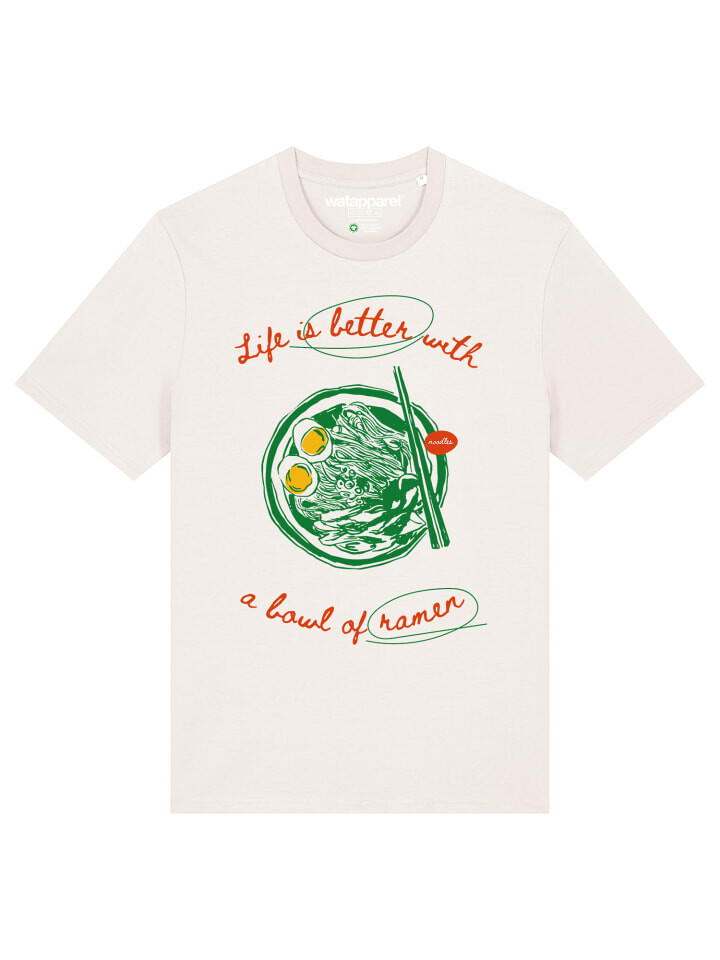 Футболка wat? Apparel T-Shirt Life is better with ramen, белый