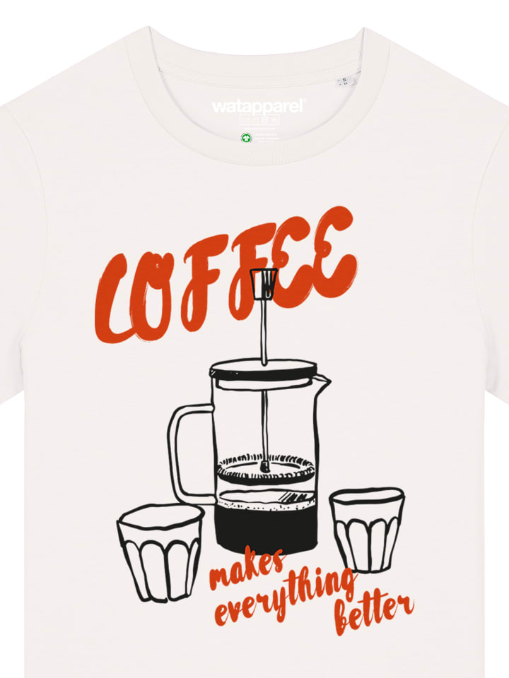 Футболка wat? Apparel T-Shirt Coffee makes everything better, белый