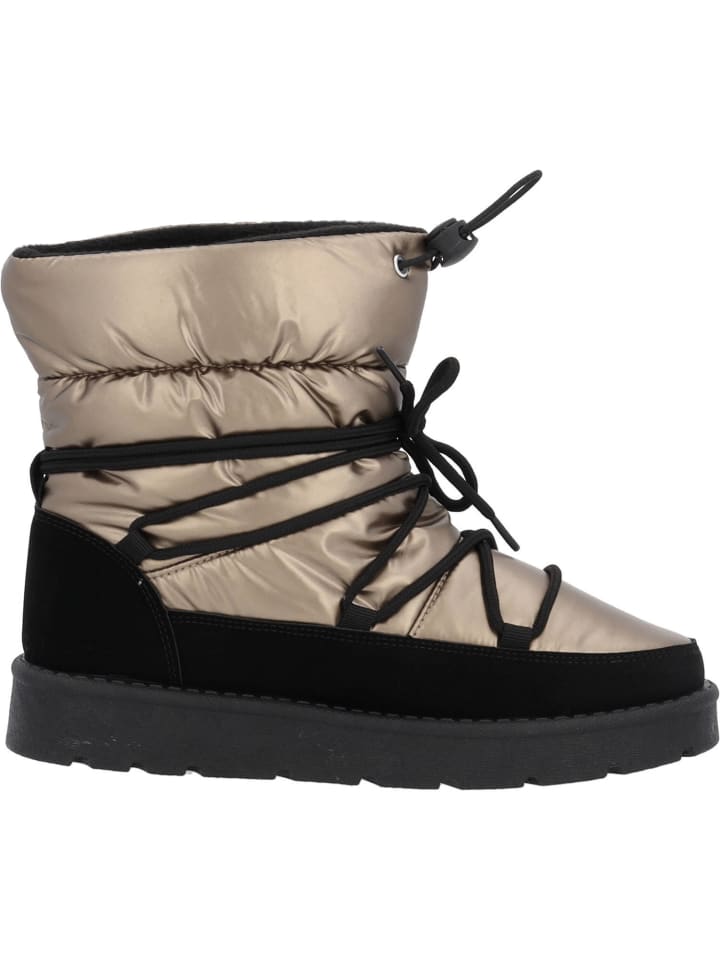 Снежные ботинки Palado «Koufonisi» — это модный ответ на зимние вызовы и устанавливают новые стандарты зимних ботинок благодаря блестящему синтетическому верху в цветовых вариантах: серебристом, черном и бронзовом. Эти ботинки не только визуально привлекают внимание, но и сохраняют приятное тепло благодаря теплой внутренней подкладке. Привлекательная шнуровка обеспечивает индивидуальную регулировку и надежный захват, а резиновая/синтетическая подошва обеспечивает надежное сцепление на скользких поверхностях. Голенище высотой 15,5 см (высота голенища для размера 37) с дополнительной быстросъемной застежкой оптимально облегает ногу и обеспечивает дополнительную защиту от холода. Благодаря своему яркому дизайну и практичной теплоизоляции «Куфониси» является незаменимым аксессуаром для любителей зимней моды.