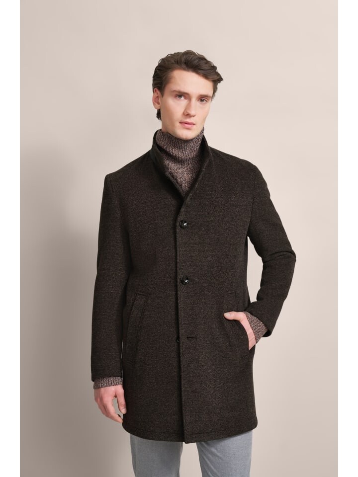 Откройте для себя комфорт и стиль пальто Bugatti с функцией растягивания! Эта элегантная модель приталенного кроя с современным воротником-стойкой и косыми прорезными карманами идеально подойдет динамичному мужчине. Мягкая на ощупь ткань и структурированная смесь шерсти и хлопка обеспечивают оптимальный комфорт и свободу движений.