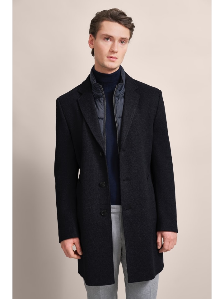 Откройте для себя пальто Bugatti с искусно встроенным искусственным жилетом, сочетающим в себе элегантность и функциональность. Изготовленное из высококачественной ткани итальянского производства, оно обеспечивает оптимальную свободу движений благодаря содержанию эластана и разрезу сзади. Классический воротник с лацканами и наклонные прорезные карманы завершают дизайн — незаменимая вещь для современного мужчины!