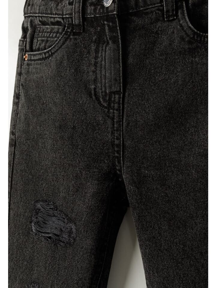 — Джинсы Mom с эффектом потертости и рваными краями, удобного кроя.