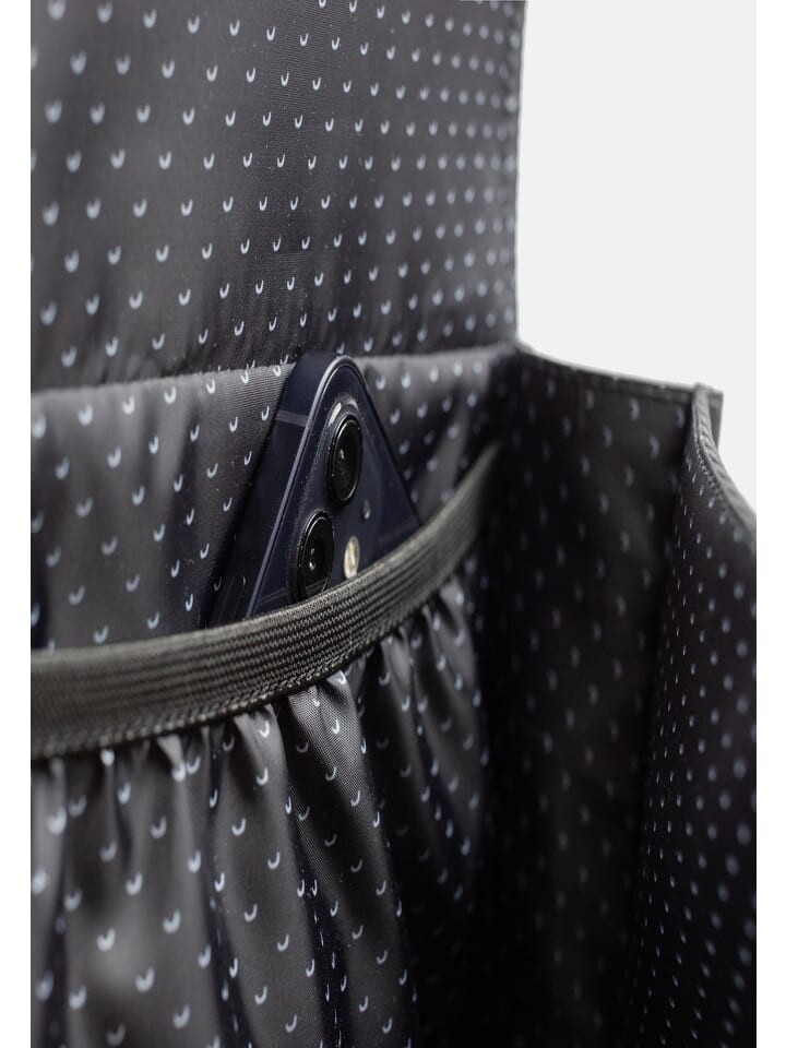 Эта сумка через плечо среднего размера из материала софтшелл сочетает в себе стиль и функциональность. Непромокаемая ткань защитит ваши предметы первой необходимости в любых погодных условиях, а магнитная застежка, открывающаяся сбоку, обеспечивает легкий доступ. Практичный внешний отсек на молнии и внутренний отсек на резинке обеспечивают оптимальное пространство для хранения. Съемный регулируемый по длине плечевой ремень обеспечивает широкие возможности ношения, а тисненый логотип на ремешке расставляет тонкие акценты. Тканая нашивка с этикеткой на боковом шве подчеркивает высококачественный дизайн. Эта сумка, 100% веганская и экологически чистая, незаменима в современной повседневной жизни.