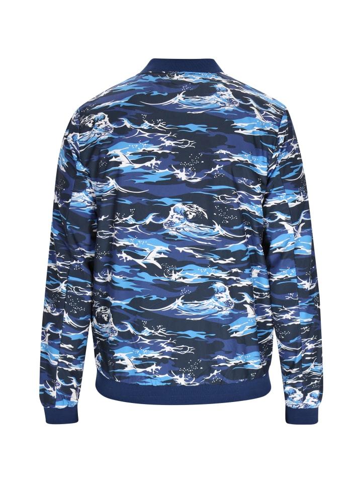 Улучшите свой стиль с помощью этого бомбера, который идеально подходит для любого типа фигуры. Воротник-стойка и длинные рукава обеспечивают тепло и комфорт, а застежка-молния позволяет носить куртку без усилий. Эта куртка повседневного стиля, украшенная ярким абстрактным узором, напоминающим приливные волны, идеально подходит для повседневной носки и дополнена карманами.