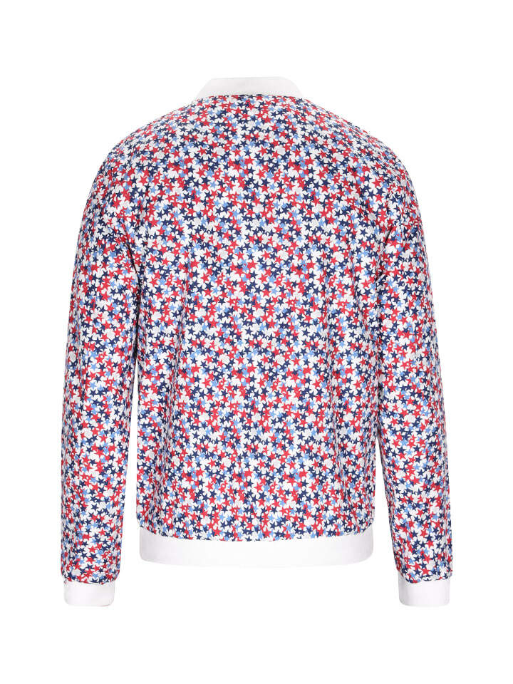 Улучшите свой стиль с помощью этого бомбера, который идеально подходит для любого типа фигуры. Воротник-стойка и длинные рукава обеспечивают тепло и комфорт, а застежка-молния позволяет носить куртку без усилий. Эта куртка повседневного стиля, украшенная ярким геометрическим принтом, идеально подходит для повседневного ношения и дополнена карманами.