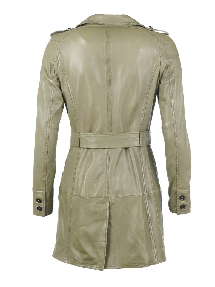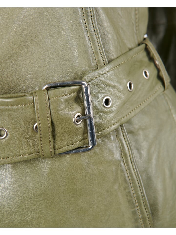 Модная кожаная длинная куртка от модного бренда MAZE. Куртка имеет элегантную планку на пуговицах и красивый широкий поясной ремень. Слегка адаптированный крой гарантирует оптимальную посадку и высокий уровень комфорта. Комфорт ношения можно регулировать с помощью кнопок на концах рукавов. Куртка также имеет красивую подкладку и широко открытый воротник рубашки.