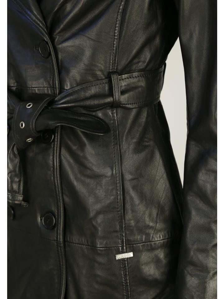 Модная кожаная длинная куртка от модного бренда MAZE. Куртка имеет элегантную планку на пуговицах и красивый широкий поясной ремень. Слегка адаптированный крой гарантирует оптимальную посадку и высокий уровень комфорта. Комфорт ношения можно регулировать с помощью кнопок на концах рукавов. Куртка также имеет красивую подкладку и широко открытый воротник рубашки.