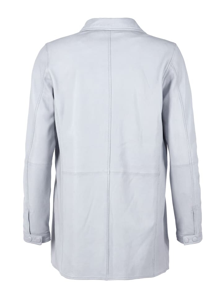 Элегантное короткое кожаное пальто от модного бренда MAZE. Пальто из мягкой и очень качественной кожи застегивается на кнопку и имеет красивый рубашечный воротник. Предусмотрены два потайных боковых кармана, два нагрудных кармана с застежками-липучками и красивыми декоративными швами. Слегка приталенный крой с кнопками на концах рукавов обеспечивает удобную посадку.
