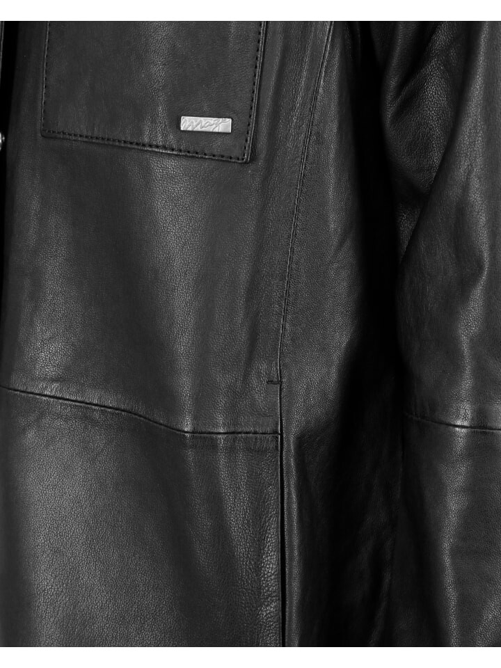 Элегантное короткое кожаное пальто от модного бренда MAZE. Пальто из мягкой и очень качественной кожи застегивается на кнопку и имеет красивый рубашечный воротник. Предусмотрены два потайных боковых кармана, два нагрудных кармана с застежками-липучками и красивыми декоративными швами. Слегка приталенный крой с кнопками на концах рукавов обеспечивает удобную посадку.