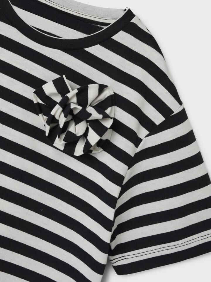 ---- NKFHOFIA SHORT NREG SS TOP NAME IT Футболка для девочек с короткими рукавами в полоску с бантом, круглым вырезом, удобная рубашка --- -/ Товар нормальный. / Материал: 50 % хлопок, 50 % полиэстер / Посадка: обычная / Застежка: Без застежки 7734 / Рекомендации по уходу: машинная стирка при 40°C