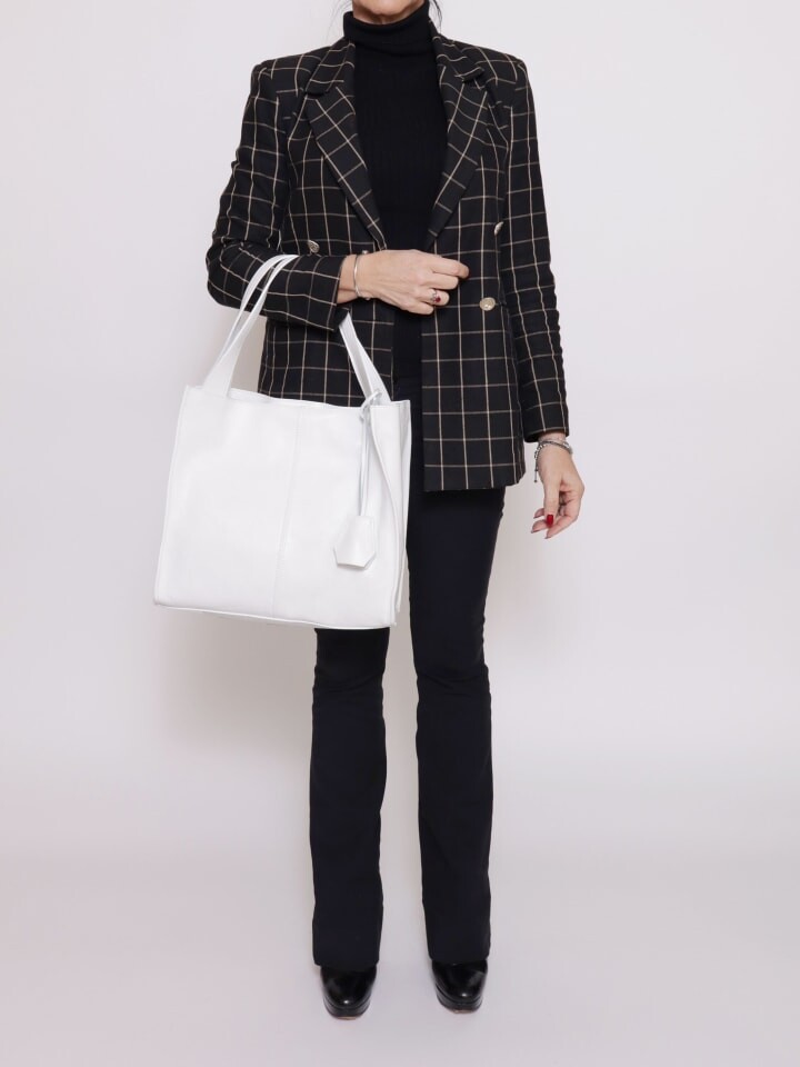 Женская сумка через плечо на молнии. один внутренний карман на молнии и один открытый. отсутствуют внешние карманы. отсутствует плечевой ремень. в кожаной ручке. внутренний отсек. Внешний материал. Подкладка 70% хлопок, внутри 30% полиэстер. Размеры: 34x32x11 см. Сделано в Италии 34х32х11 см