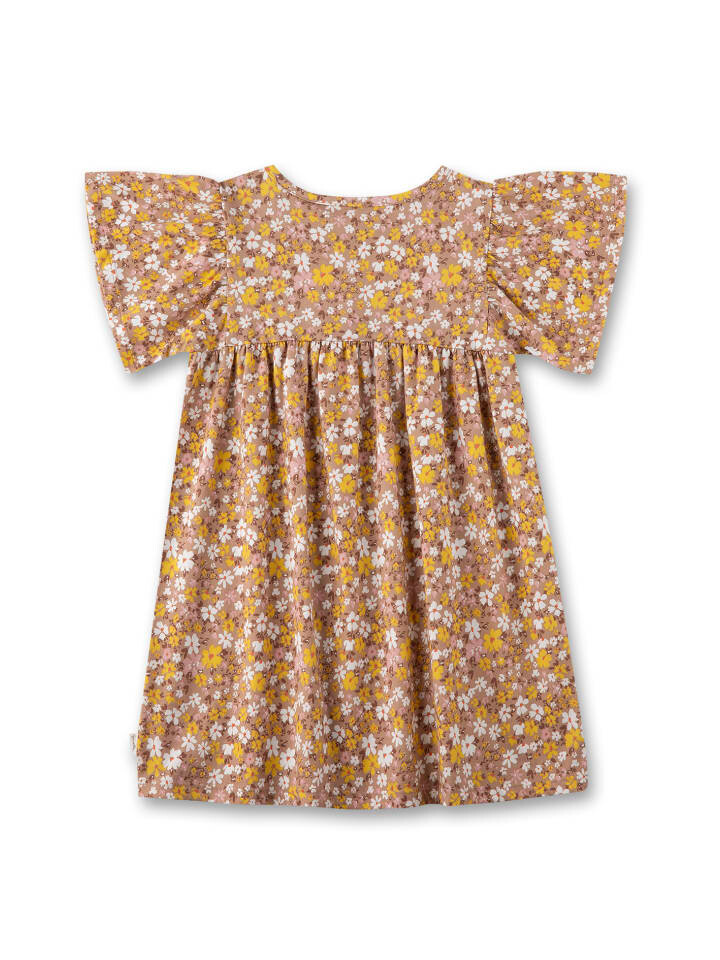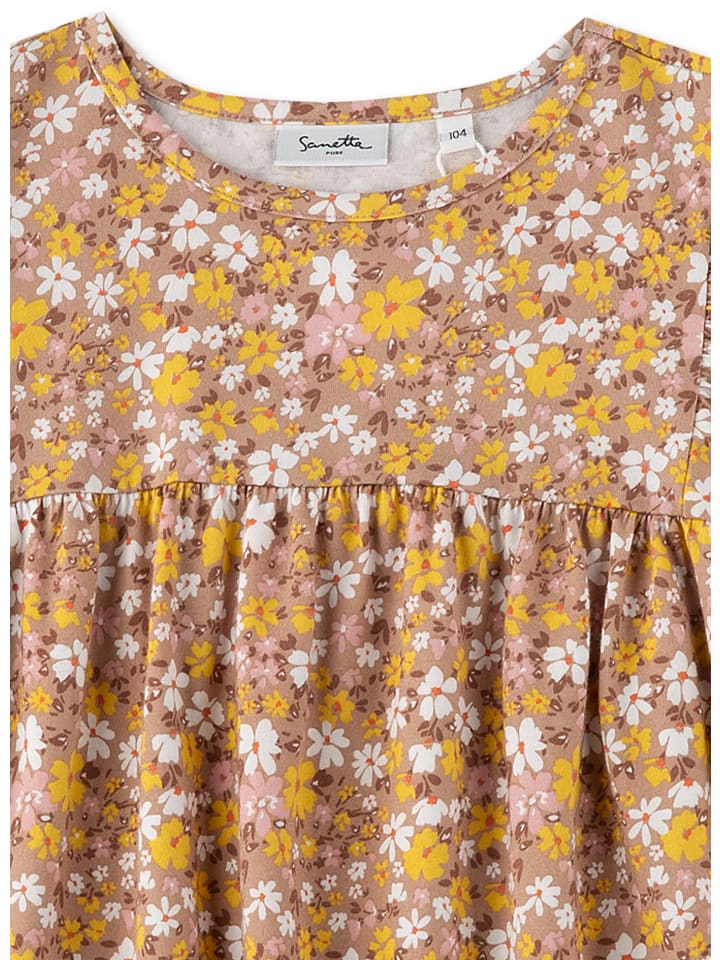 Игривое летнее платье для девочек с модным цветочным узором коричневого, розового, белого и желтого цветов от Sanetta Pure.