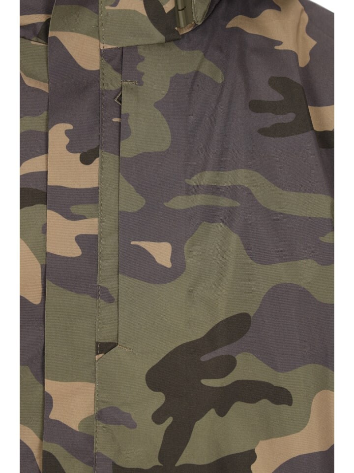Эта куртка с капюшоном, идеально подходящая для любителей активного отдыха, впечатляет ярким камуфляжным рисунком. Он оснащен передней молнией во всю длину с тканевой обивкой, регулируемым капюшоном на шнурке и практичными карманами на молнии по бокам. Эта куртка, функциональная и стильная, идеально подходит для активного отдыха или повседневных экскурсий на природу.