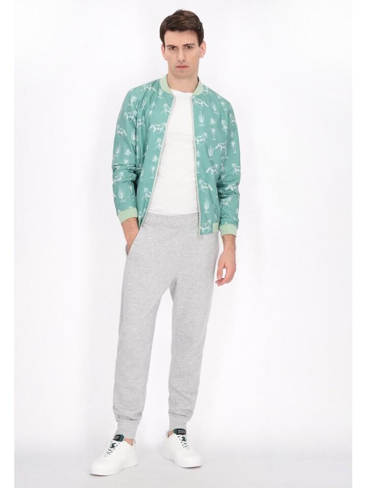 — Бомбер стандартного кроя с воротником-стойкой и длинными рукавами
