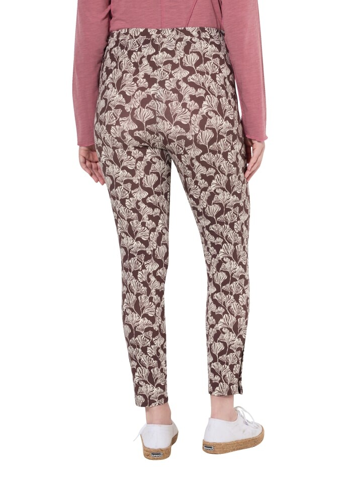 Леггинсы из натурального хлопка с узором в виде листьев и эластичным поясом. Подол с декоративными пуговицами сбоку. Органический; сертифицировано лицензией ECOCERT Greenlife № 152026.