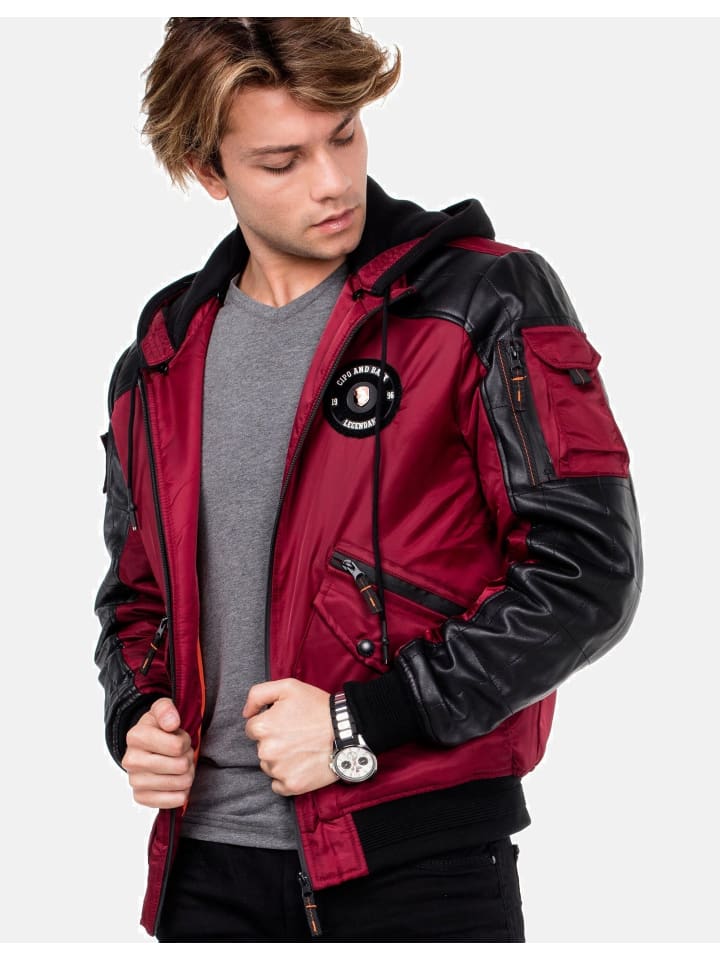 Кожаные детали на рукавах и плечах, а также нашивки на рукавах и груди этой супер крутой куртки-бомбера от бренда Cipo Baxx, несомненно, подчеркивают байкерский образ, который также подчеркивают два накладных кармана и нарукавный карман. Модель имеет легкую подкладку и съемный капюшон из плотной толстовочной ткани. Поэтому его идеально можно носить как переходную куртку. Без капюшона используется воротник-стойка, что также подчеркивает повседневный образ. В истинном стиле бомбер, конечно же, можно сочетать со всеми джинсами Cipo & Baxx.